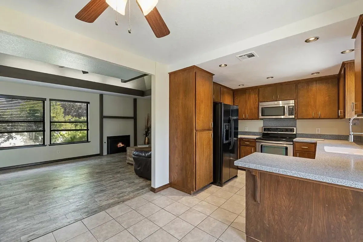 Welcome to 8385 N Raisina Ave - a rare gem tucked in the heart of Fresno's sought-after Woodward Park area! This stylish 2-bed, 2-bath condo blends comfort and convenience with a fresh, modern feel. Step into an inviting open-concept living space with soaring ceilings, a cozy fireplace, and brand new carpets. The fully updated kitchen shines with Corian countertops, stainless steel appliances, and sleek finishes perfect for everyday living or entertaining guests.Enjoy two generously sized bedrooms, including a tranquil primary suite with a beautifully remodeled en-suite bath. A private patio offers your own outdoor retreat, while a detached garage adds extra storage and security. You'll love the in-unit laundry, new energy-efficient A/C, and custom stained glass windows.Located in a quiet 3-unit enclave, just minutes from River Park, Woodward Park trails, and Clovis Unified schools. This is low-maintenance living at its best. Whether you're a first-time buyer, downsizer, or investor, this turn-key home checks every box. Schedule your showing todaythis beauty won't last!